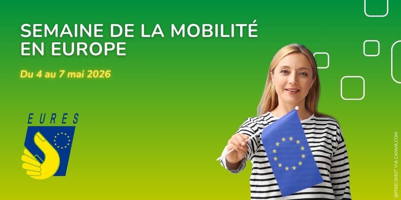 La Semaine de la Mobilité en Europe organisée par le réseau EURES, du 4 au 7 mai 2026, propose 16 webinaires pour préparer un projet de mobilité en Europe. Cap emploi animera l'un de ces webinaires en faveur de la mobilité des personnes en situation de handicap