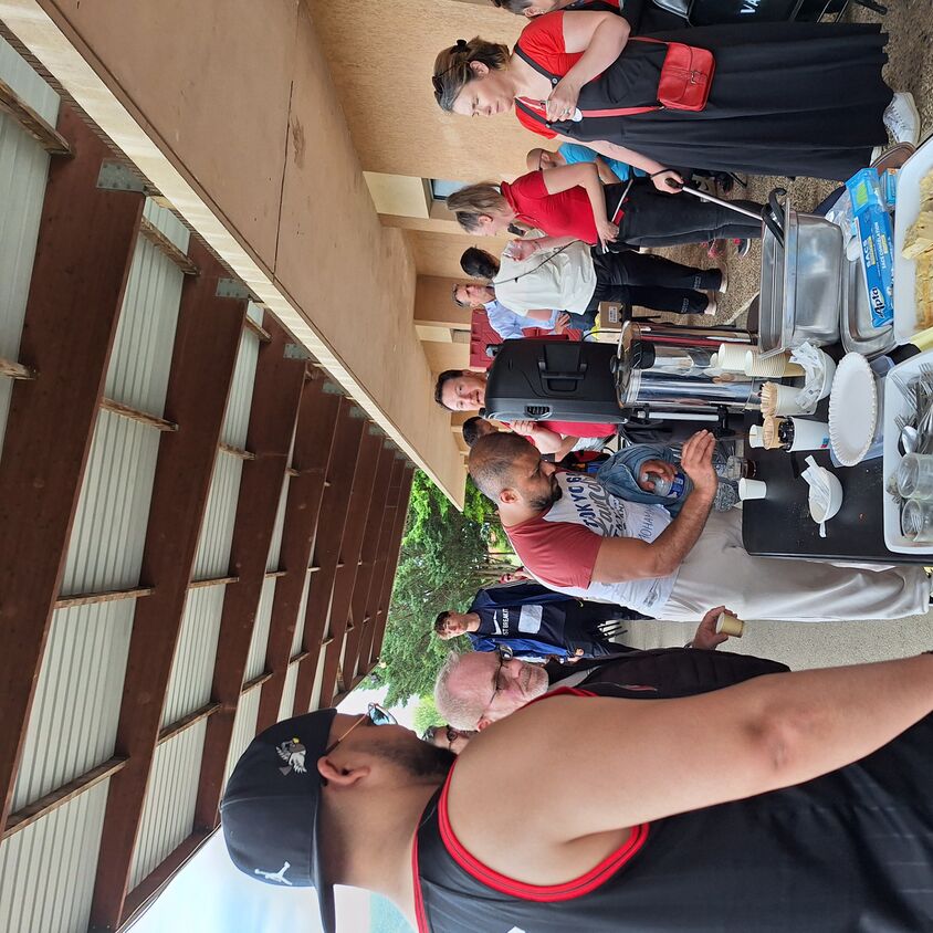 Un déjeuner gratuit pour les participants, est partagé après les défis sportifs du matin !