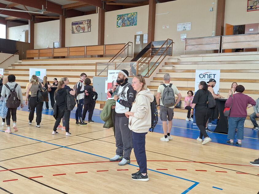 Ce mardi 28 avril 2026, la commune d'AMBERIEU EN BUGEY recevait l'ensemble des participants au "stade vers l'emploi", un Job Dating innovant pour recruter de manière différente. Une centaine de candidats ont pu cotoyer sur la journée les 15 partenaires présents. CAP EMPLOI 01 était présent tout au long de la manifestation.